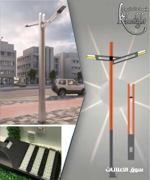 نحن متخصصون باعمدة انارة الشوارع واعمدة الانارة الديكوريه وكشافات الطاقة الشمسيه والمستلزمات الكامله لشركات المقاولات والبلديات
