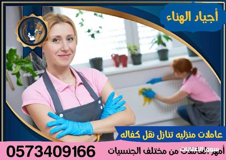 خادمات منزليه تنازل نقل كفاله جميع الجنسيات لدينا امهر العاملات طباخات مربيات مدربين ومؤهلين علي كافه اعمال المنزل نظافه وترتيب وغسيل وكي الملابس الرعايه الكامله لكبار السن والاهتمام بالأطفال كما نستقبل العاملات الغير موفقه لدي كفيلها وتعويضه عن كافه المصاريف واعاده تأهيل العامله لبيت جديد نسعد بخدمتكم علي مدار الساعة 0573409166