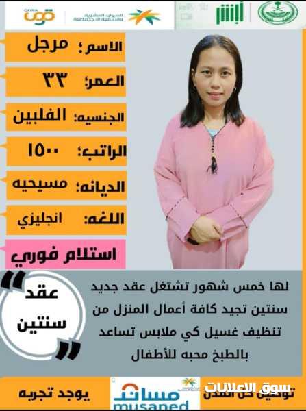 متوفر عماله منزليه وطباخات ومرافقين لكبار السن وعاملات نظافه ومربيات اطفال وكوافيرات وسائقين ومتاح التجربه لكل أنحاء المملكه والتجربة خير برهان