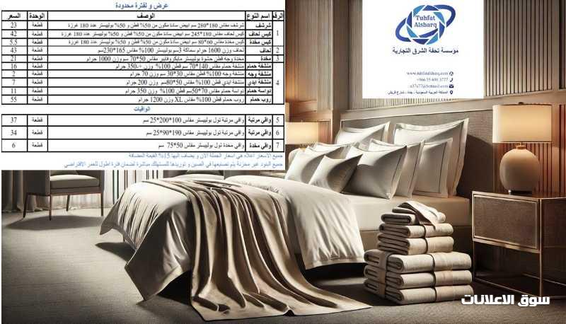 تحفة الشرق للوازم الفندقية لينين لحف شراشف مخدات مناشف