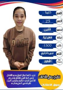 فلبينيه تجيد الطبخ وجميع الاعمال المنزليه