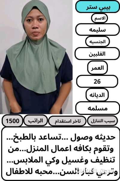 متوفر لدينا عاملات منزليه حديثات وصول وسبق لهم العمل لديهم الخبره في جميع أعمال المنزل من ترتيب وتنظيف وغسيل الملابس تهتم برعاية الأطفال وكبار السن بمهارة واهتمام مثاليات للعائلات التي تبحث عن مساعدة منزلية موثوقة للتواصل واتساب 0568519087