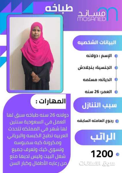 متوفر عماله منزليه وطباخات ومرافقين لكبار السن وعاملات نظافه ومربيات اطفال وكوافيرات وسائقين ومتاح التجربه لكل أنحاء المملكه والتجربة خير برهان
