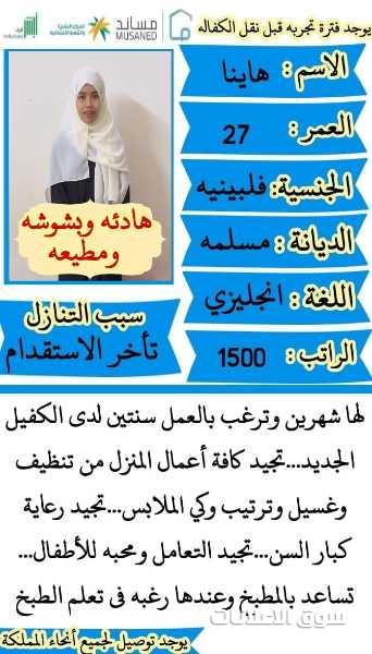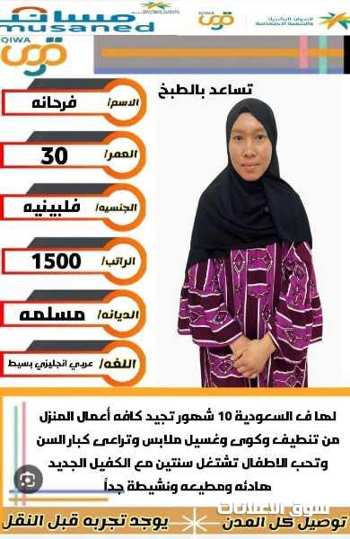 متوفر عماله منزليه وطباخات ومرافقين لكبار السن وعاملات نظافه ومربيات اطفال وكوافيرات وسائقين ومتاح التجربه لكل أنحاء المملكه والتجربة خير برهان