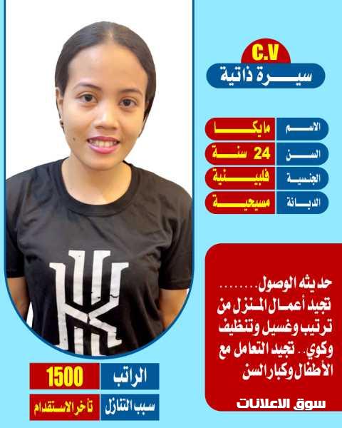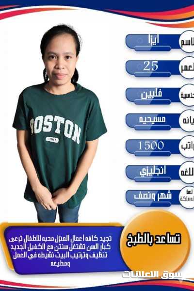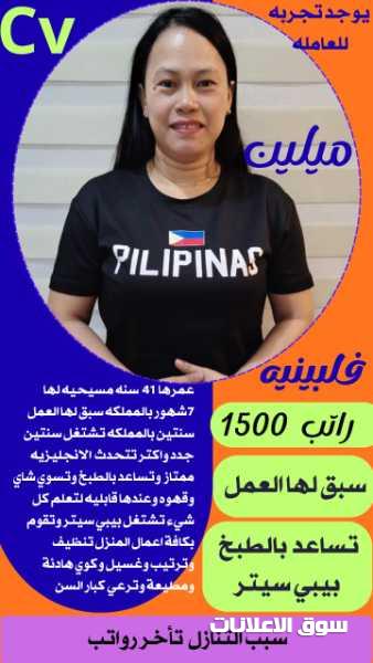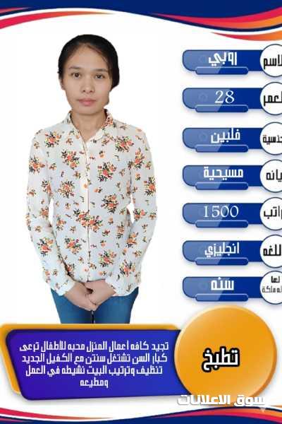 فلبينيه تجيد الطبخ وجميع الاعمال المنزليه